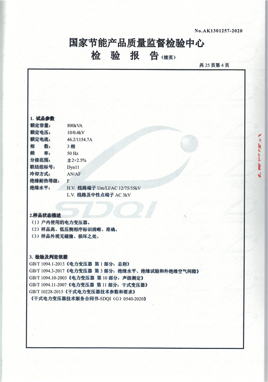 SCB10干式變壓器形式檢驗(yàn)報(bào)告