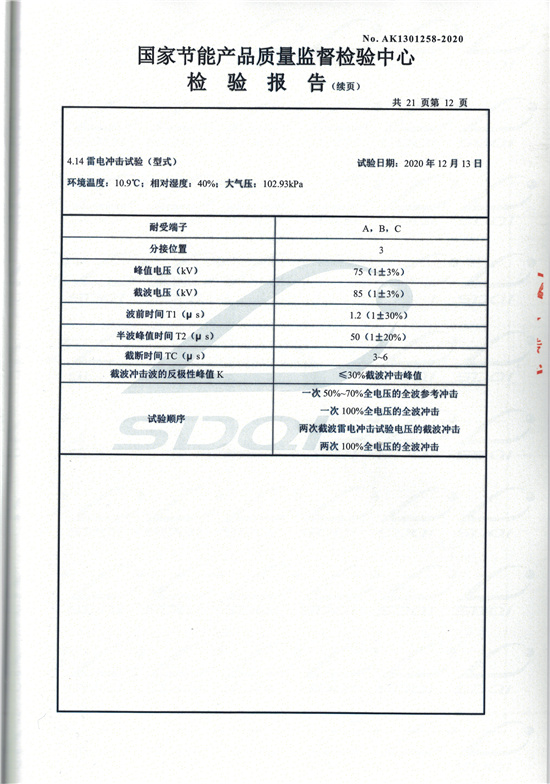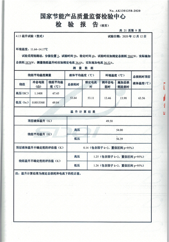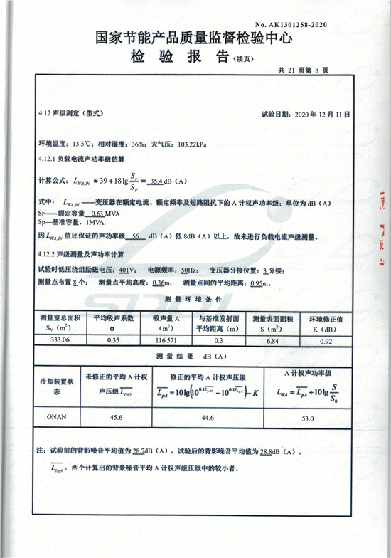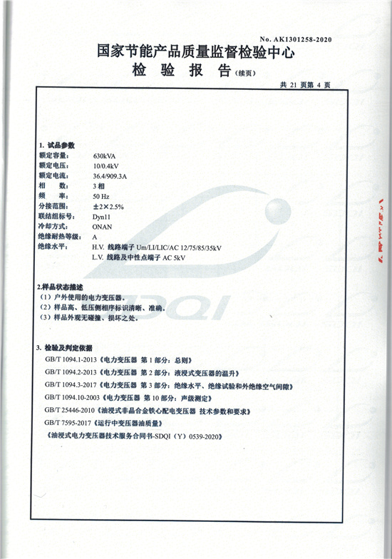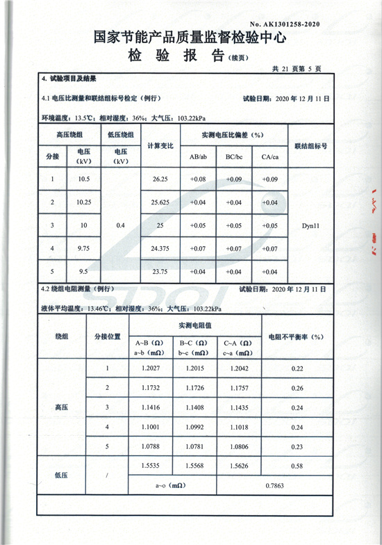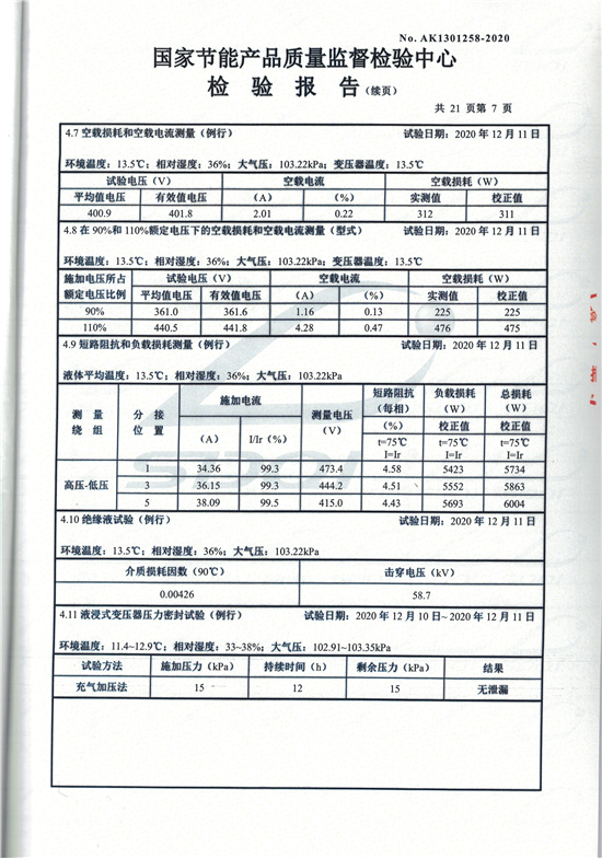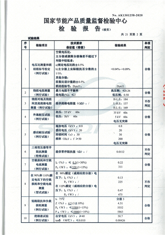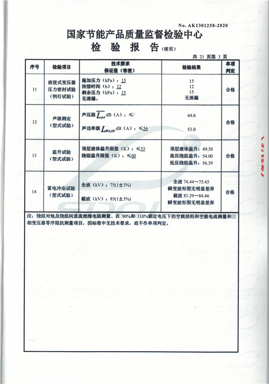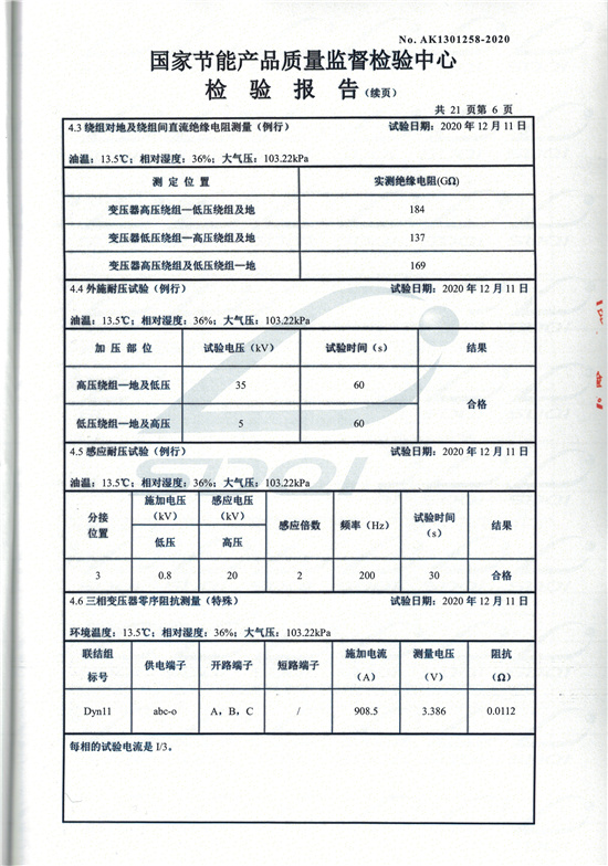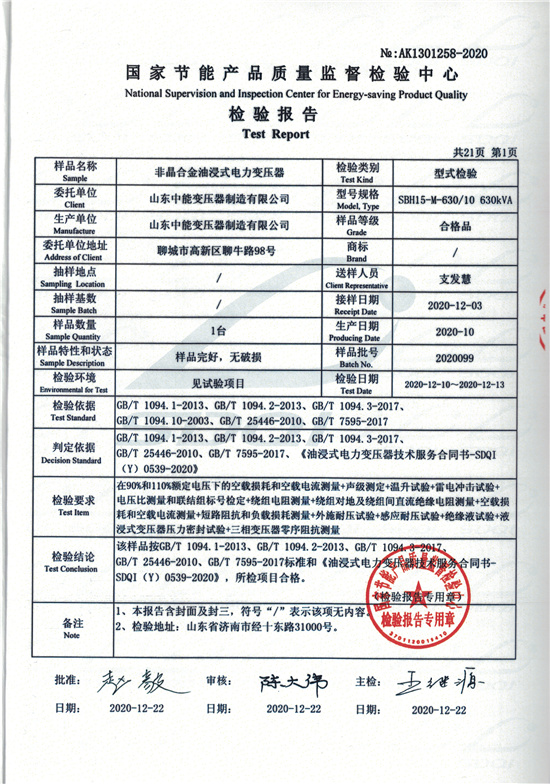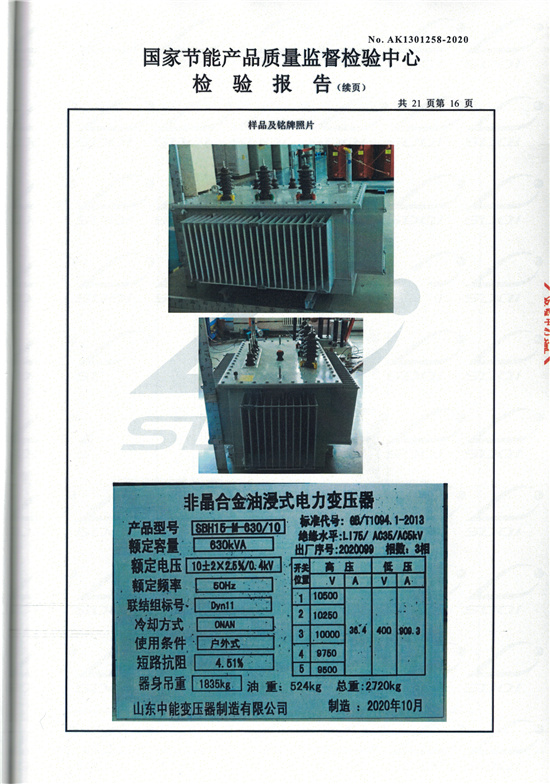 SBH15非晶合金變壓器檢驗(yàn)報告