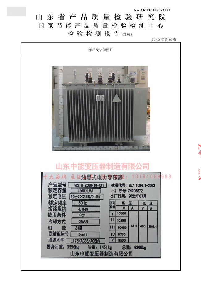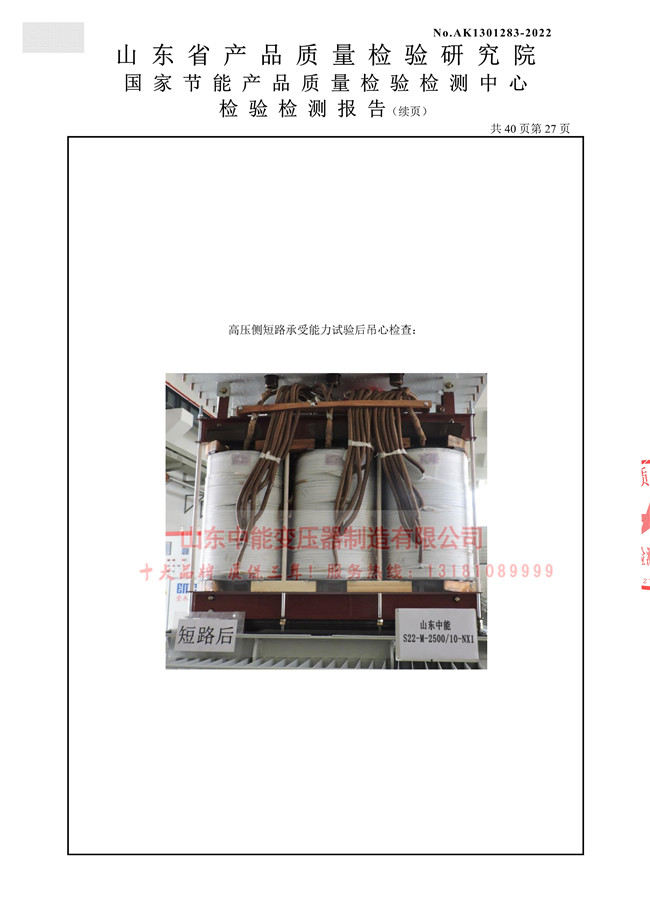 S22系列變壓器檢驗(yàn)報(bào)告 NX1 一級能效 抗短路